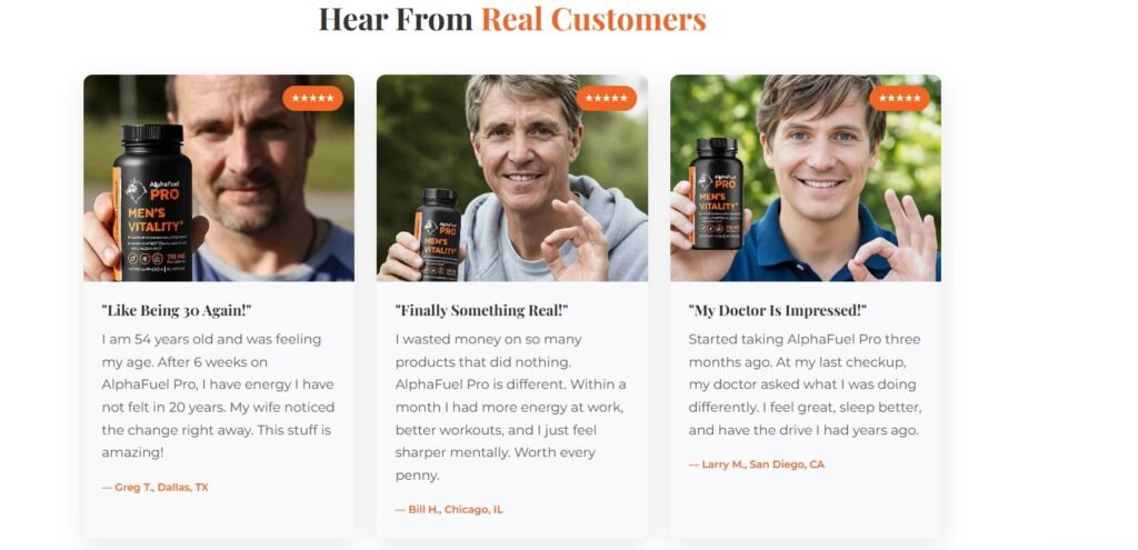 AlphaFuel Pro is marketed as a natural supplement designed to support male vitality by improving circulation, enhancing energy production, and maintaining hormonal balance. Unlike quick-fix products that rely on stimulants, it focuses on supporting the body’s internal systems for long-term results.
