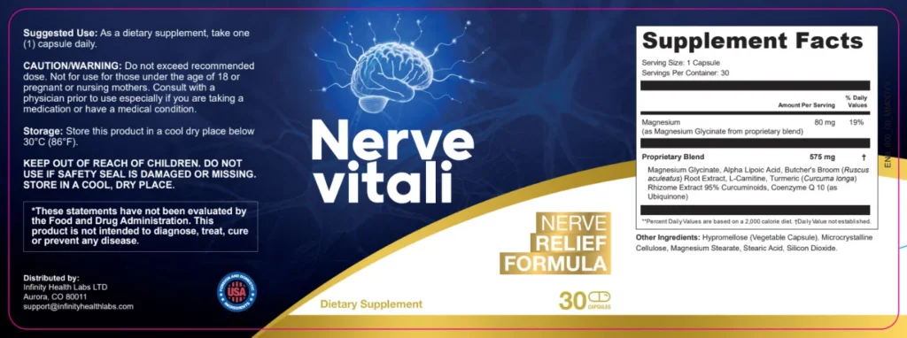 NerveVitali is a dietary supplement formulated to support nerve health, improve circulation, and reduce discomfort such as tingling, numbness, and sensitivity. It is typically available in capsule form and designed for daily use.