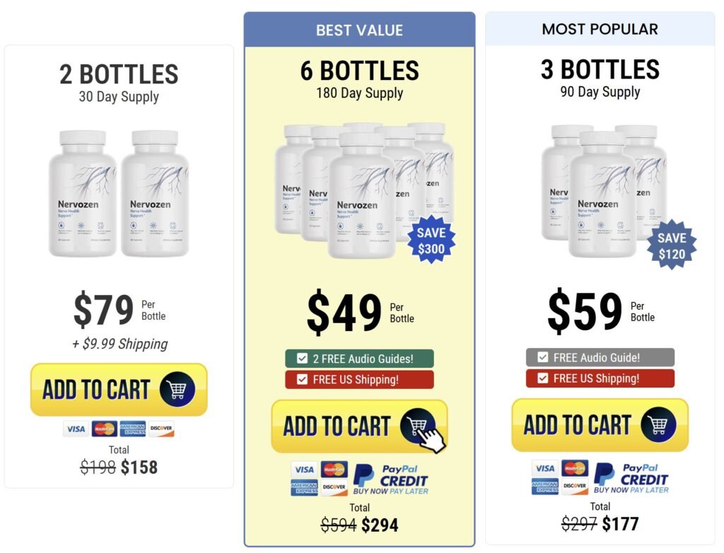 Nervozen is typically available in multiple pricing options. A single bottle is offered at standard pricing, while bundle deals provide better value for long-term users.